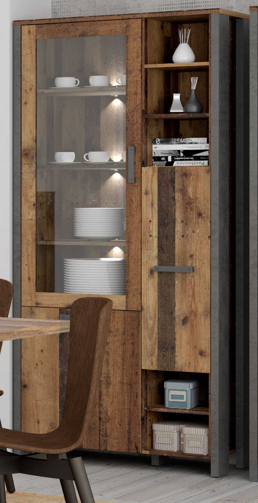 Vitrine Clif Old Used Wood Shabby Und Beton Grau