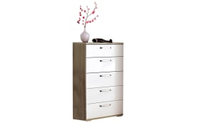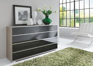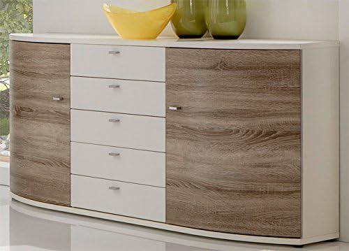 Korpus und front aus melaminharzbeschichteter spanplatte griffe und beschläge aus metall füße aus kunststoff. In lowboards finden häufig dvds und blu rays pc und konsolenspiele platz genauso wie diverse player oder rekorder. Ausführung von front in weiß dekor hochglanz korpus in trüffeleiche mit 5 schubkästen b h t ca. 60 x 102 x 36 cm.